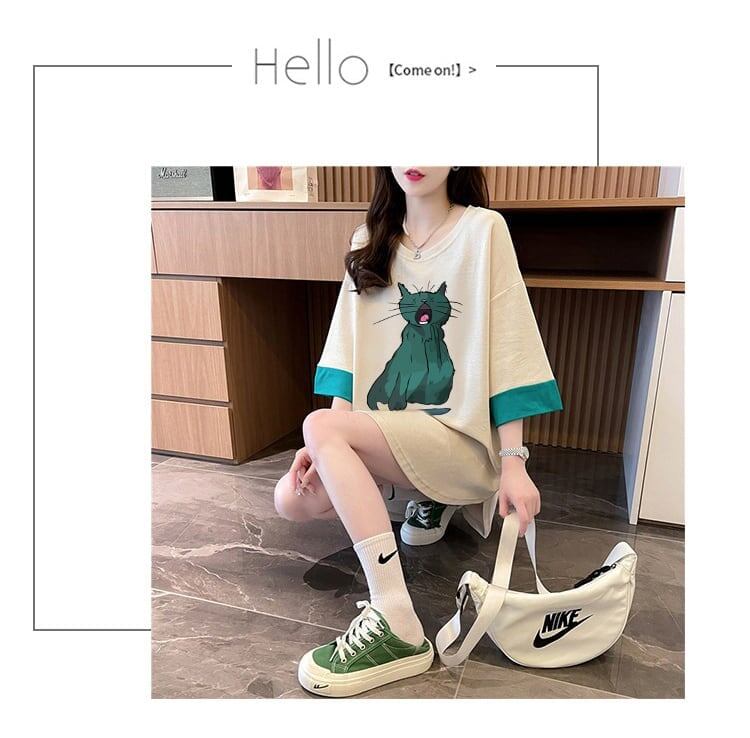 ユニークなデザイン気質のカラーブロック半袖Tシャツ<ins-2900>