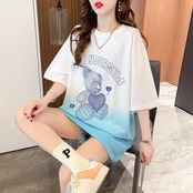 おすすめ新作 グラデーション プリントTシャツ ゆったり半袖<ins-2886>