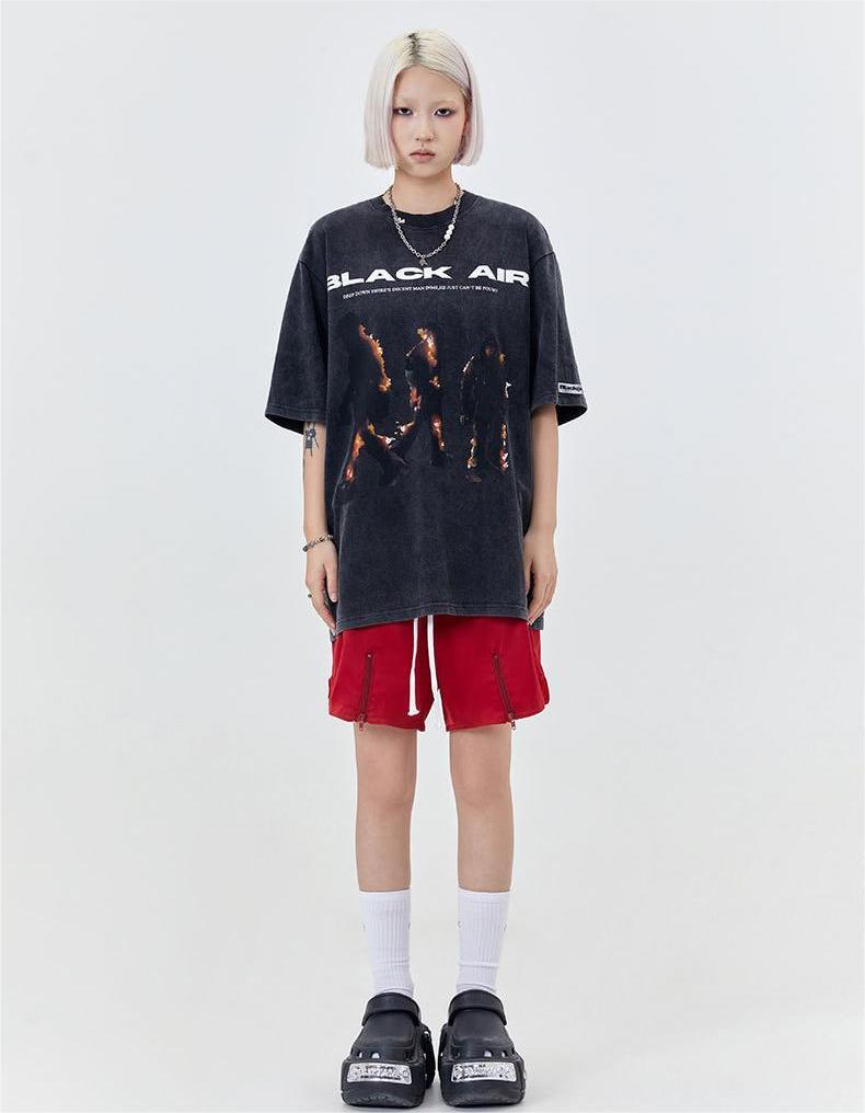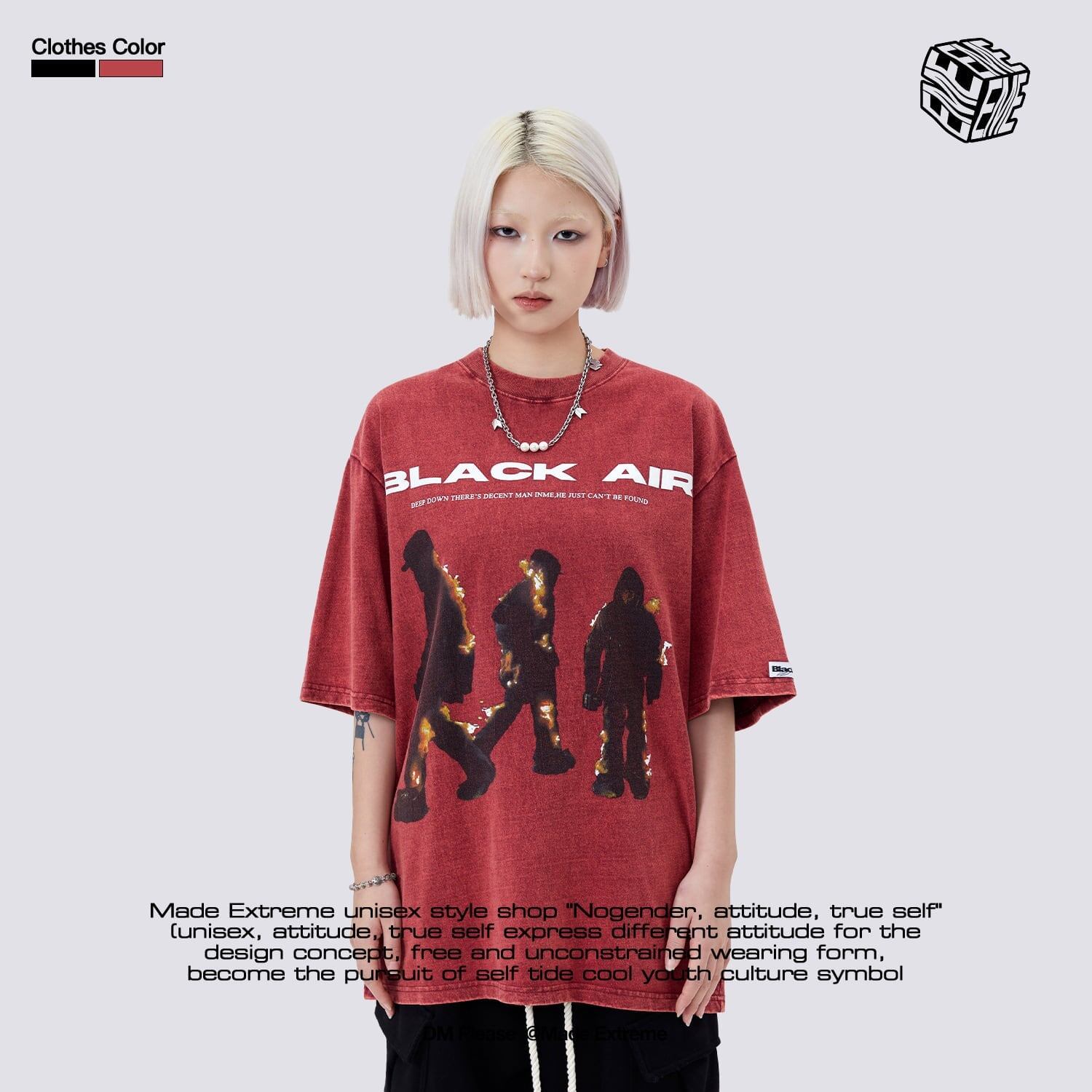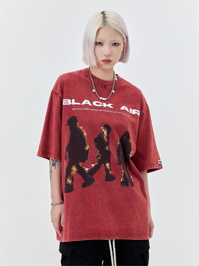 タイドブランド アメリカンストリート レトロフレームプリントTシャツ<ins-2905>