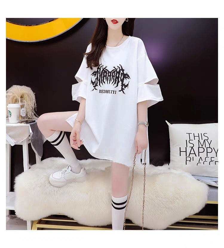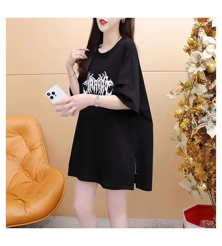絶対欲しい プリント ロング ドロップショルダー Tシャツ ゆったり半袖 <ins-2880>