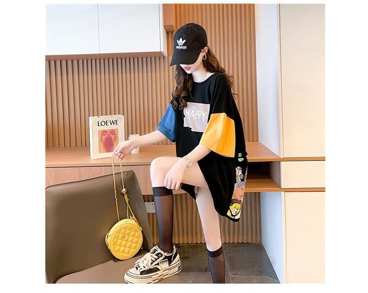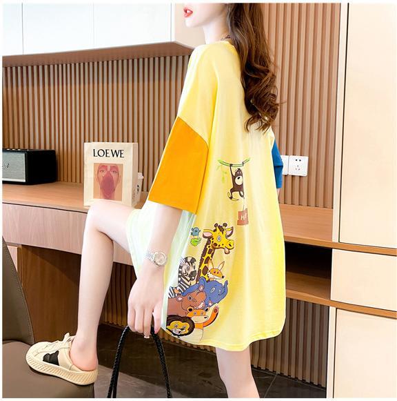 遊び心溢れるキュートなデザインのレディースゆったり半袖Tシャツ<ins-2855>