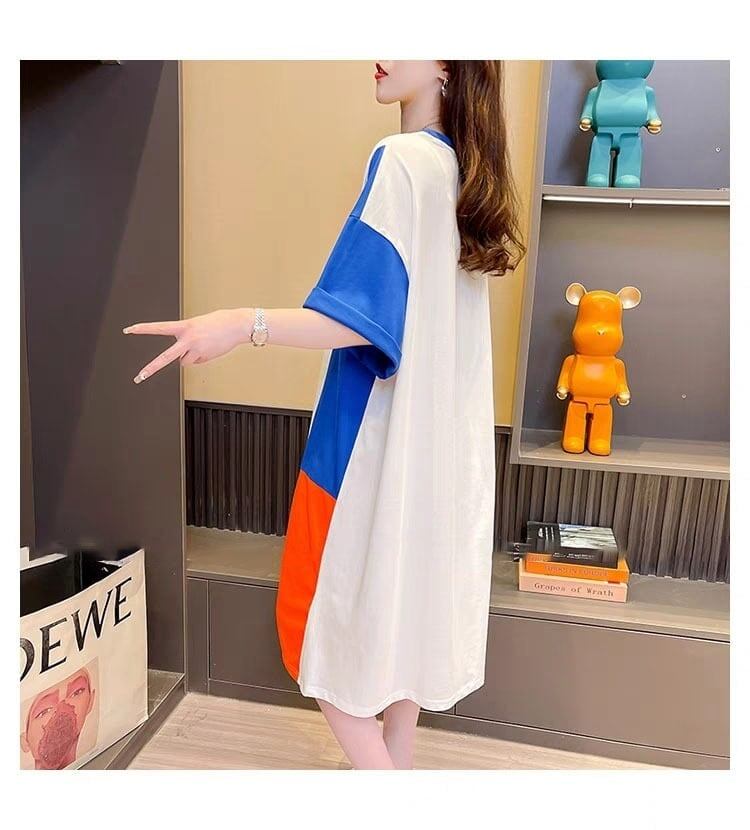夏新作 存在感満点 カラーマッチング ロング Tシャツ ゆったり <ins-2839>