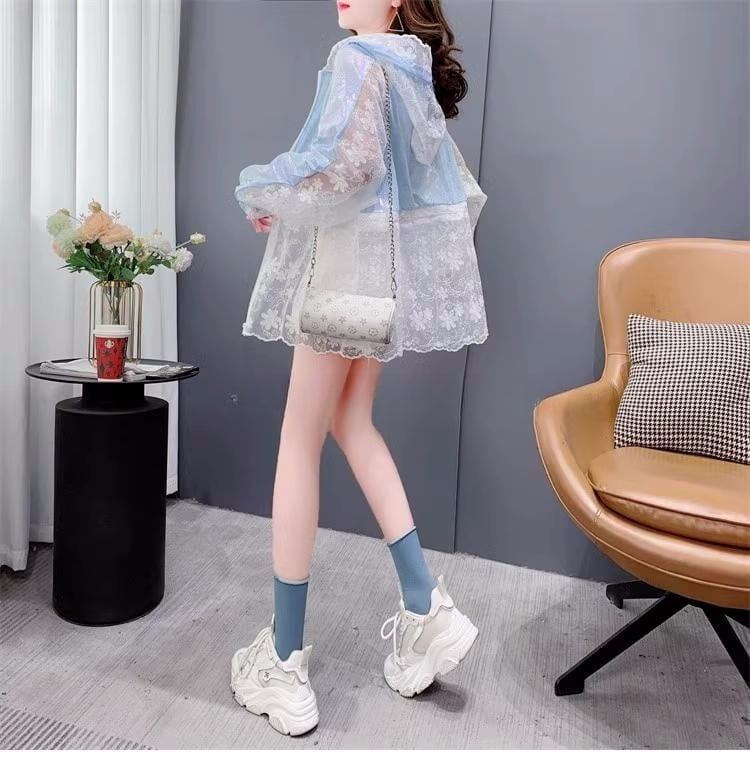 絶対欲しい 透け感 UVカット UV対策 長袖レース刺シャツ <ins-2827>