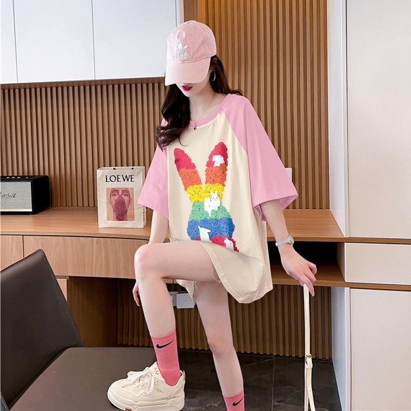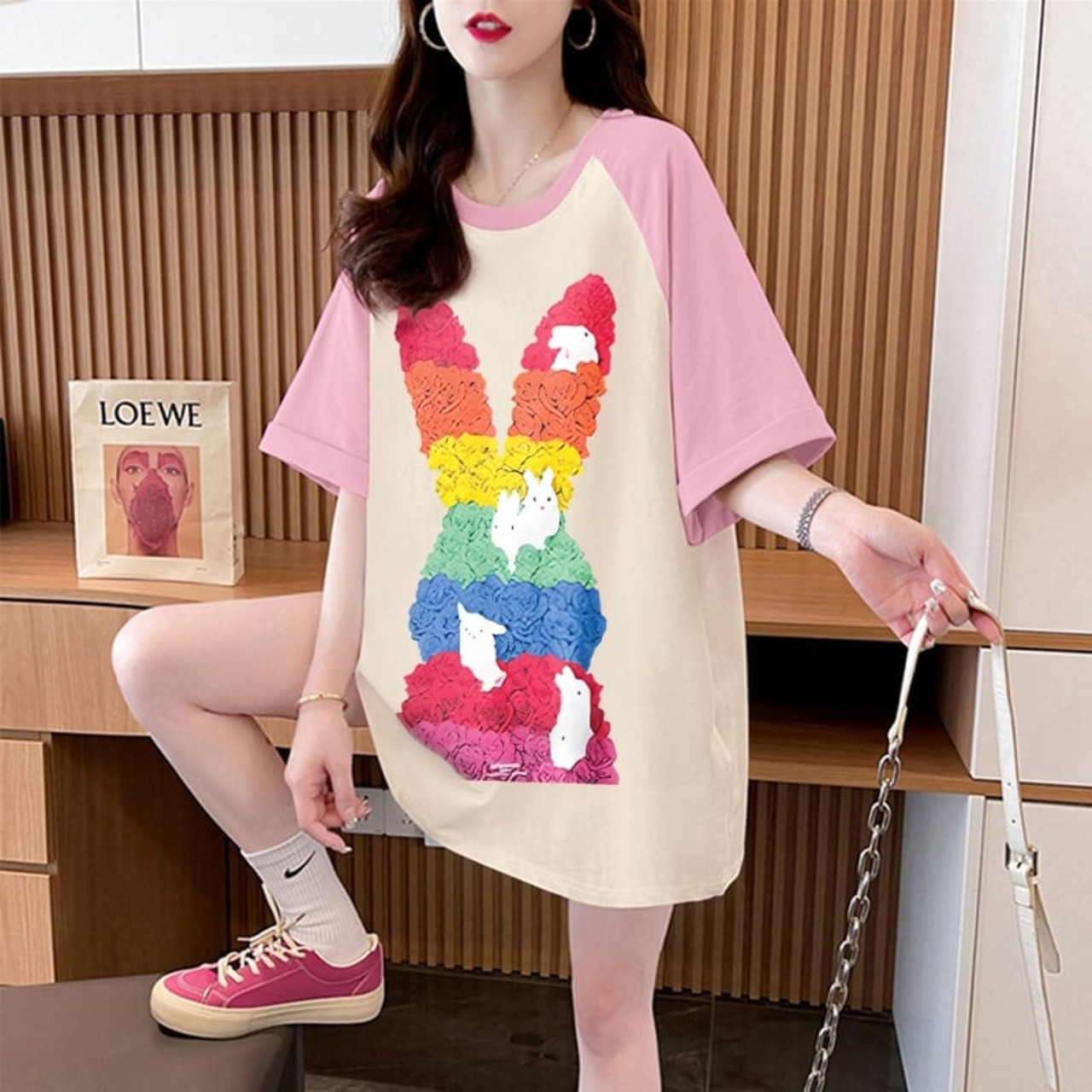 美人度アップ 可愛いウサギ Tシャツ 丸襟 半袖<ins-2824>