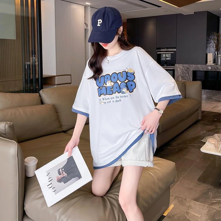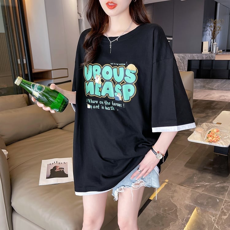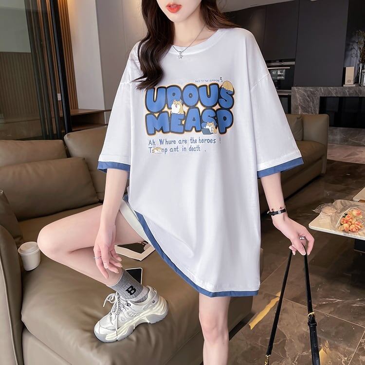 新作 ロング プリントTシャツ アルファベット オーバーサイズ<ins-2808>