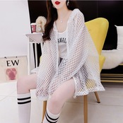 オシャレ度満点 透け感 日焼け対策 透かし彫り ジャケット ブルゾン<ins-3248>