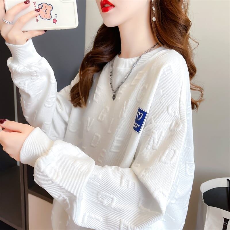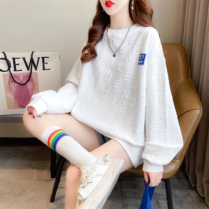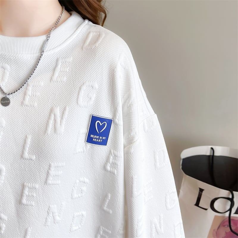 原宿系 ラウンドネック スウェット ホワイト/ブラック<ins-3829>