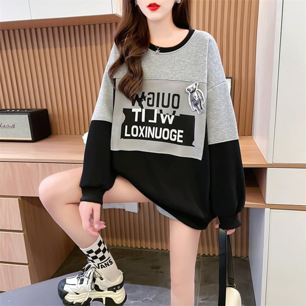 裏起毛切り替えスウェット<ins-3852>