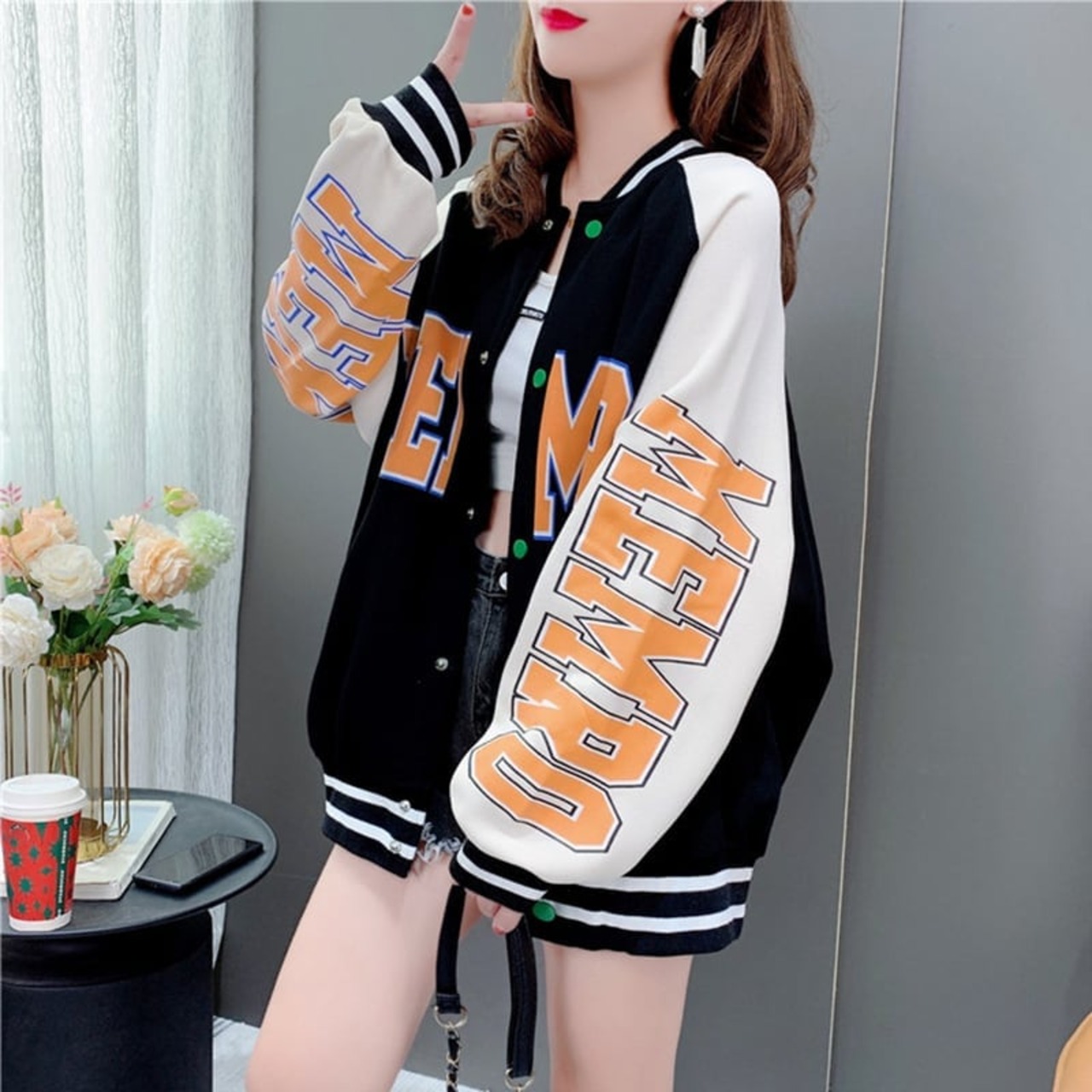 ファッション 美人度アップ 3色選択可 プリント スウェット パーカー<ins-3797>