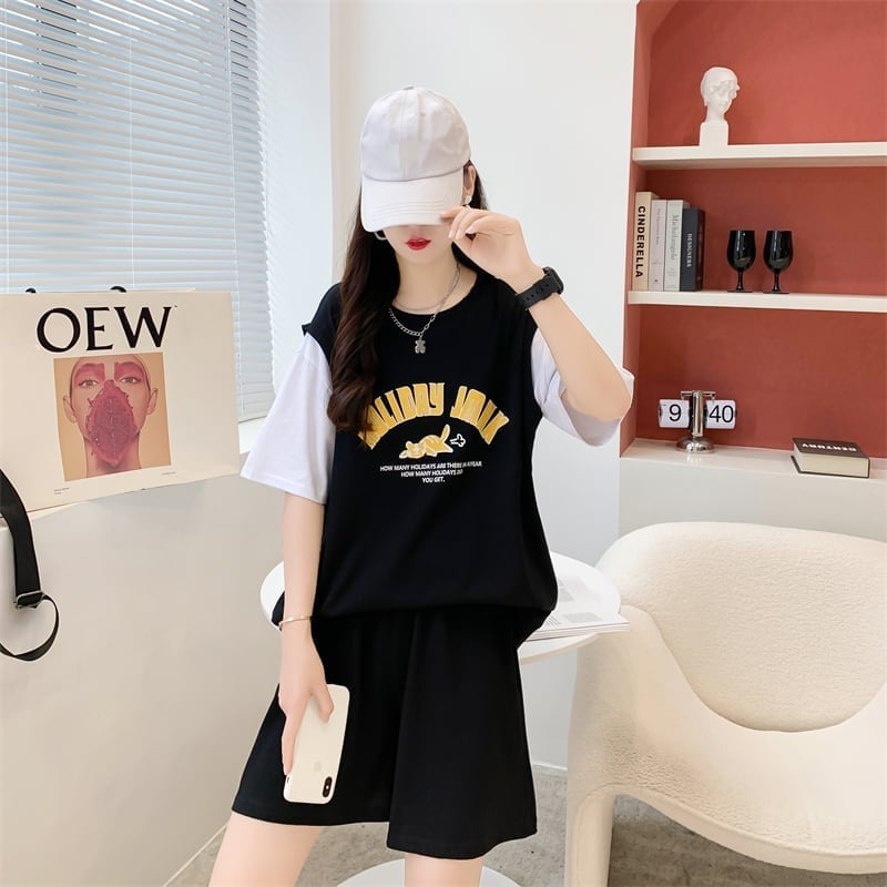 美人度アップ チャーミング 切り替え Tシャツ+ショートパンツ セットアップ<ins-3615>