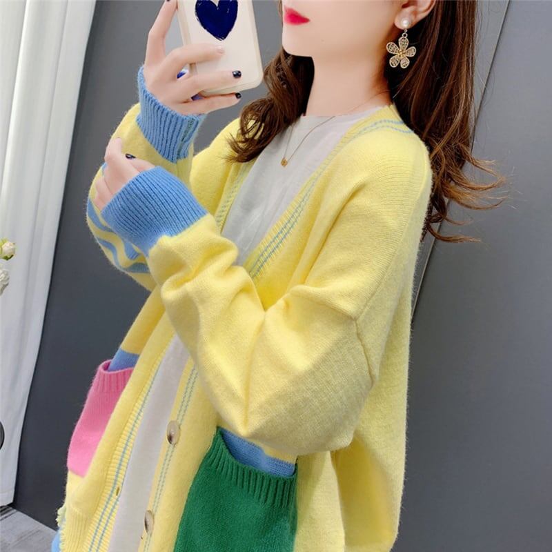 スタイリッシュ 個性的なデザイン 切り替え セーター<ins-3812>