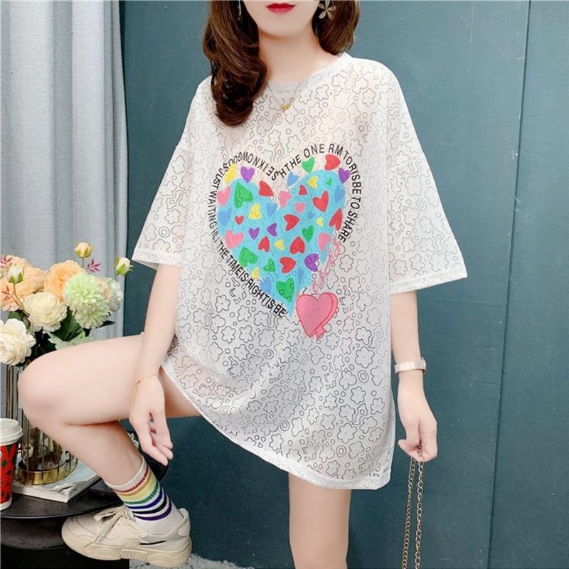 スタイリッシュ 一目惚れ 切り替え プリント Tシャツ カットソー<ins-3579>