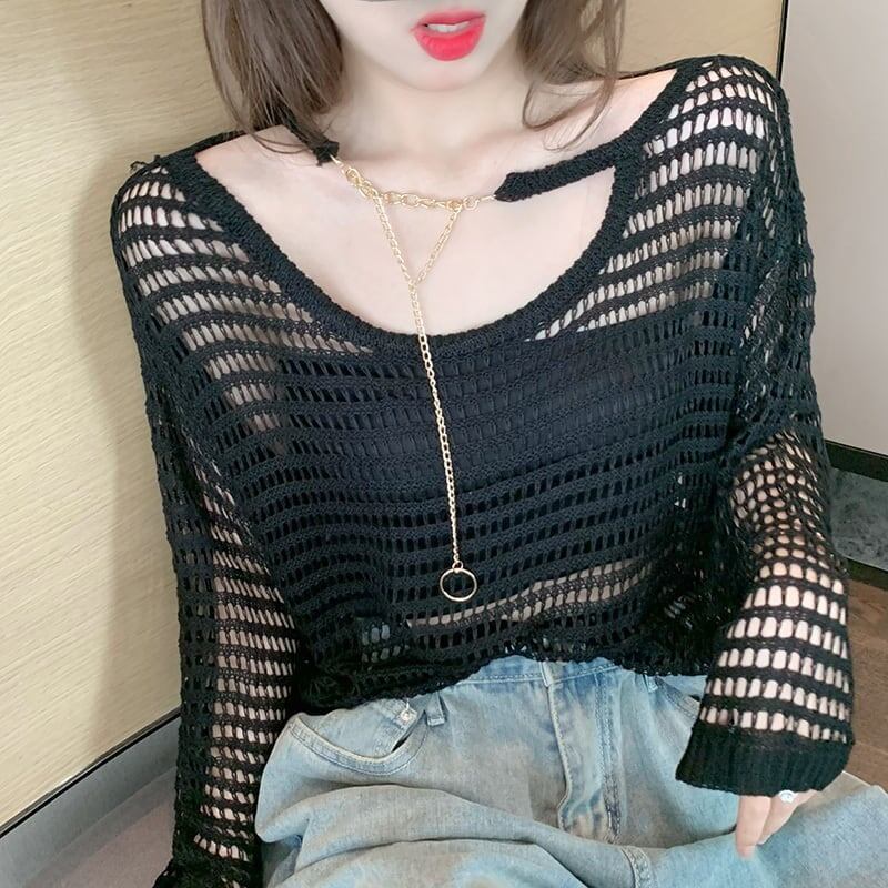 デザイン感 チャーミング 透かし彫り シャツ ブラウス<ins-3557>