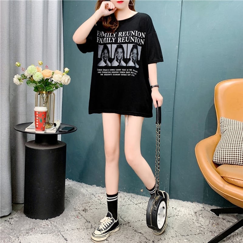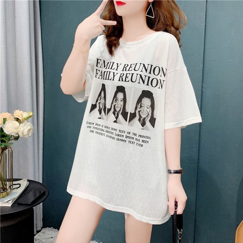 デザイン感 チャーミング 切り替え プリント Tシャツ カットソー<ins-3517>