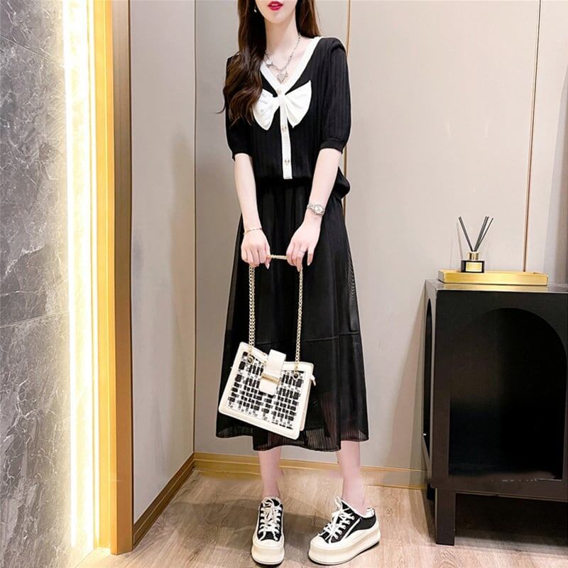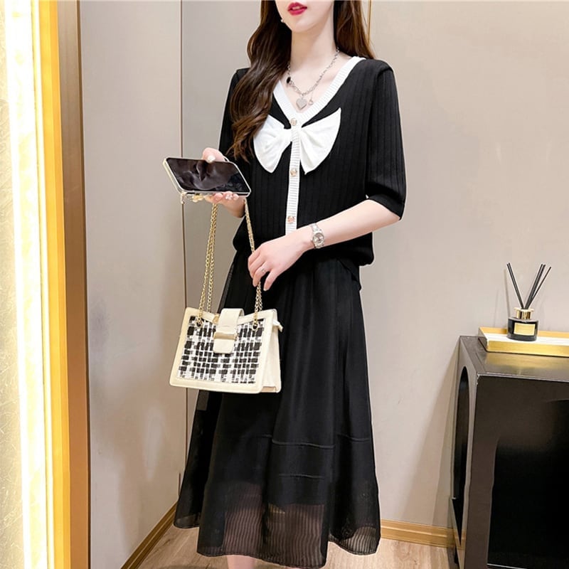 ゆったり感アップ 美感いっぱい 切り替え Tシャツ+スカート セットアップ<ins-3574>