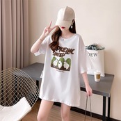合わせやすい チャーミング 切り替え プリント Tシャツ カットソー<ins-3480>