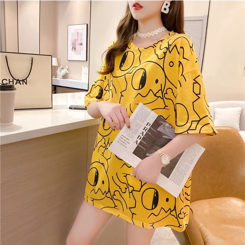 カジュアル ファッション 切り替え プリント Tシャツ カットソー<ins-3484>
