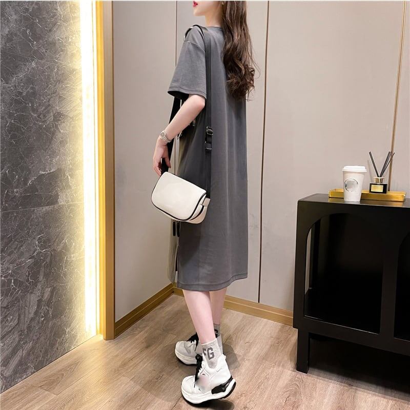 個性的なデザイン 一目惚れ プリント Tシャツ カットソー ワンピース<ins-3490>