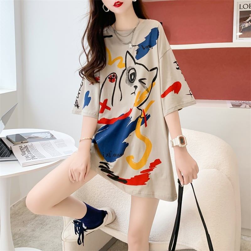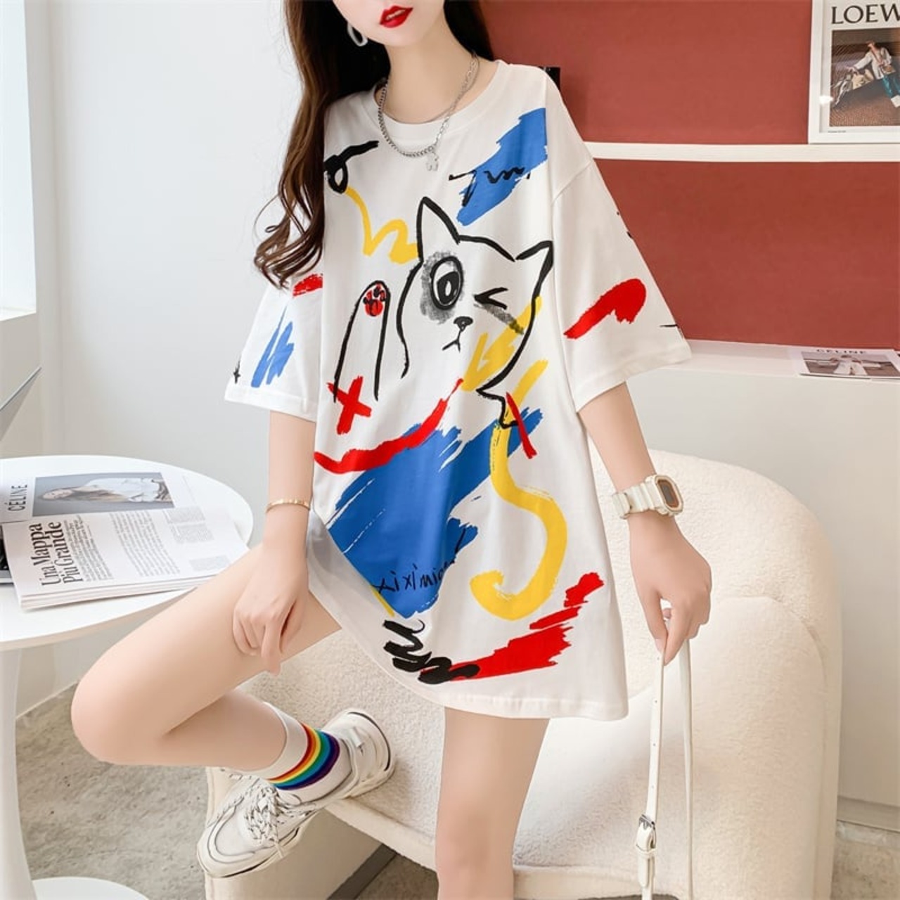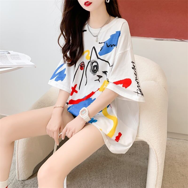 ルーズ 今季大好評 カートゥーンプリント Tシャツ カットソー<ins-3471>