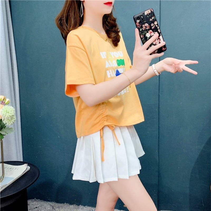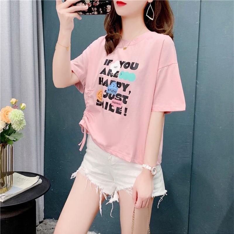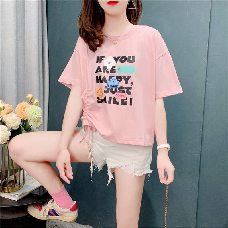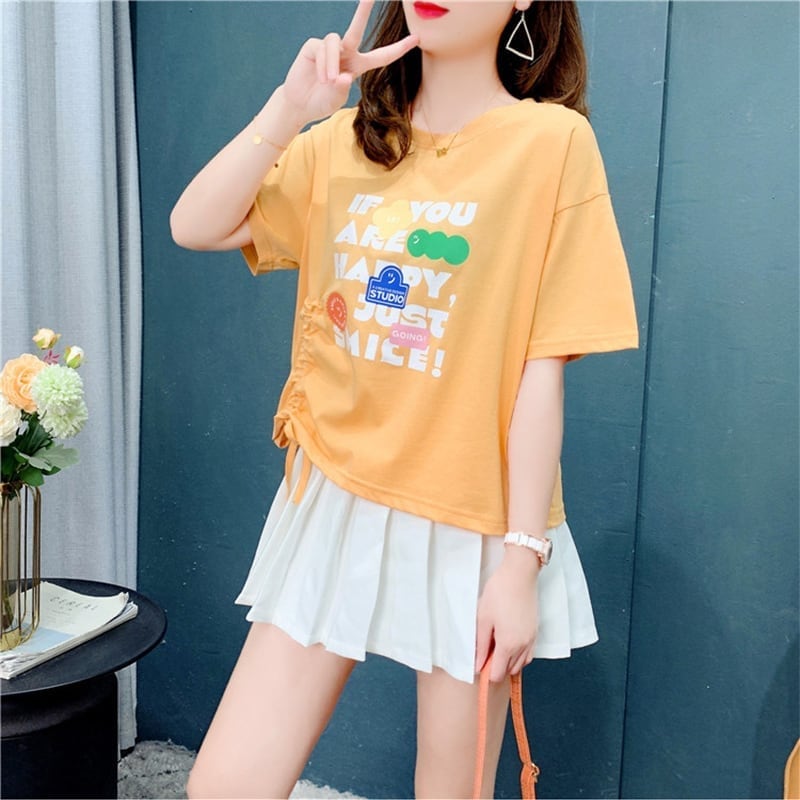 個性的なデザイン 一目惚れ 切り替え プリント Tシャツ カットソー<ins-3671>