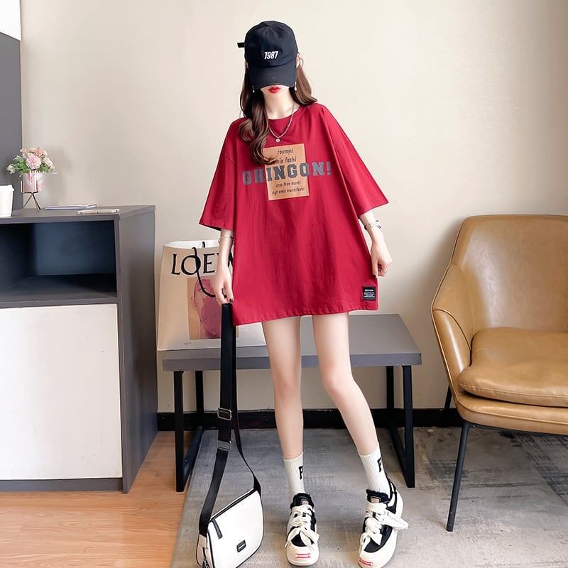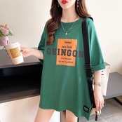 着心地抜群 女性力を高める 切り替え プリント Tシャツ カットソー<ins-3592>
