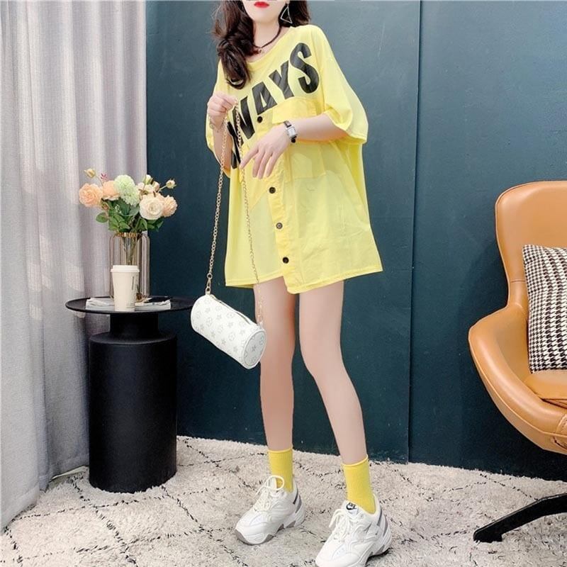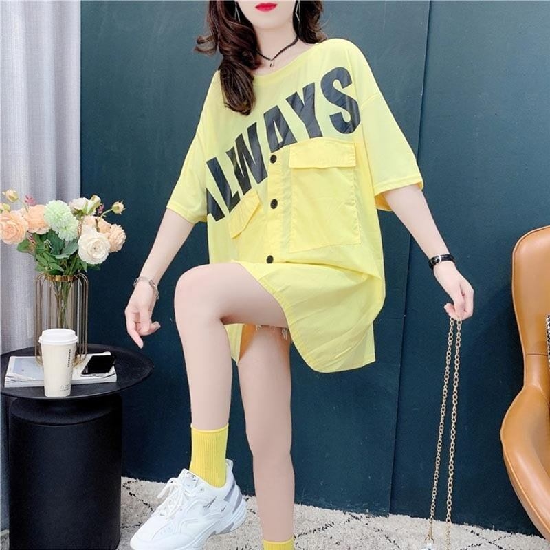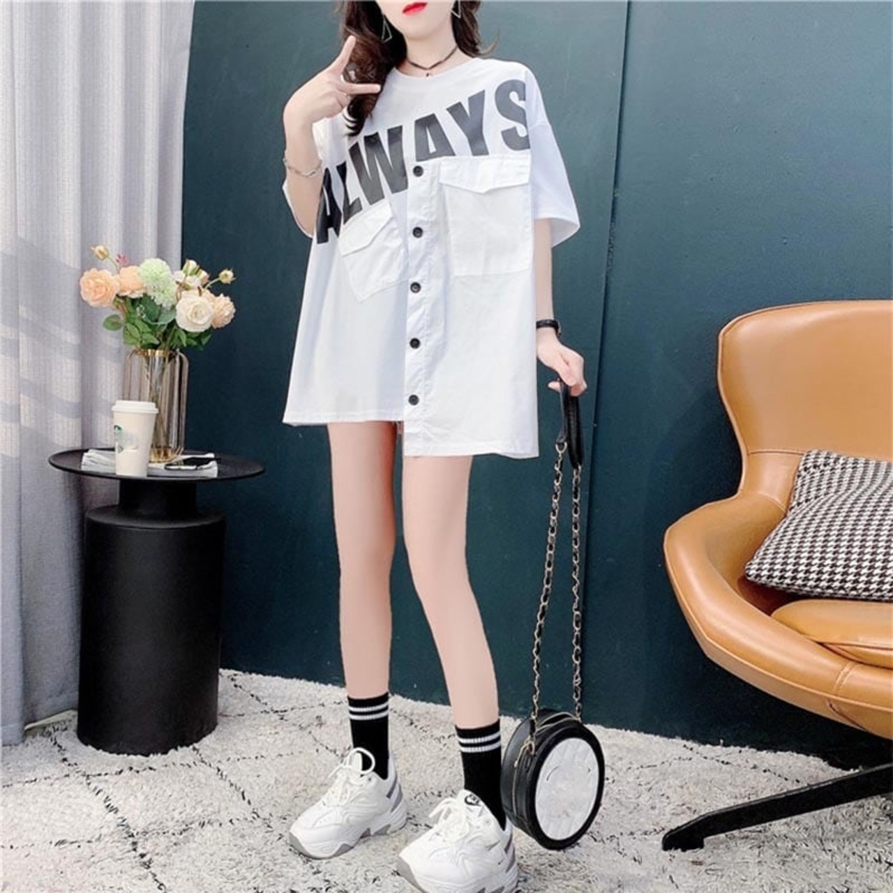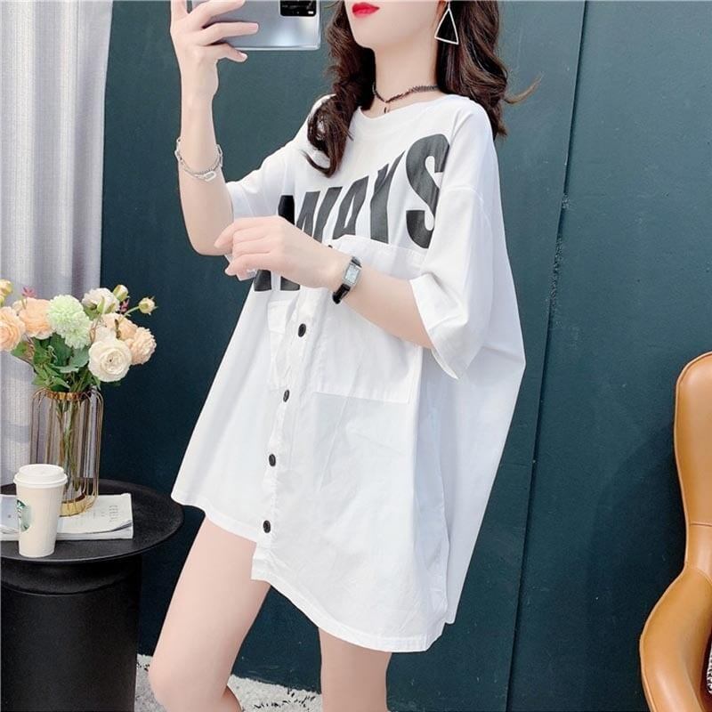 合わせやすい デザイン感 切り替え プリント Tシャツ カットソー<ins-3637>