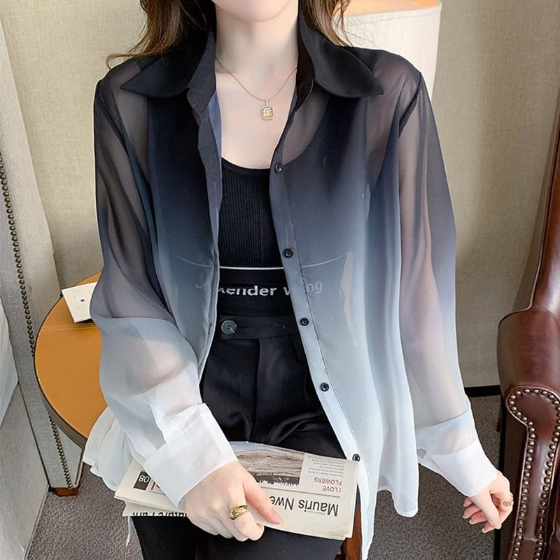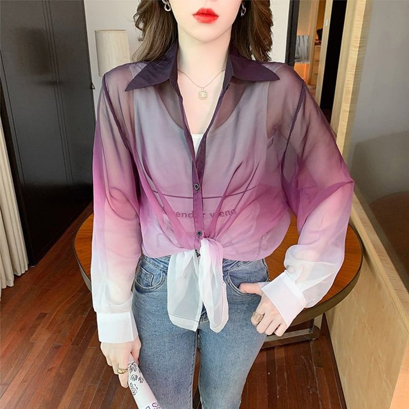 個性的なデザイン 一目惚れ 日焼け対策 グラデーション シャツ ブラウス<ins-3455>