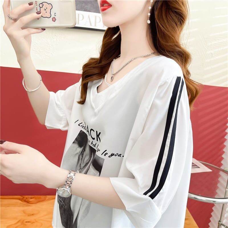デザイン感 チャーミング プリント Tシャツ カットソー<ins-3476>