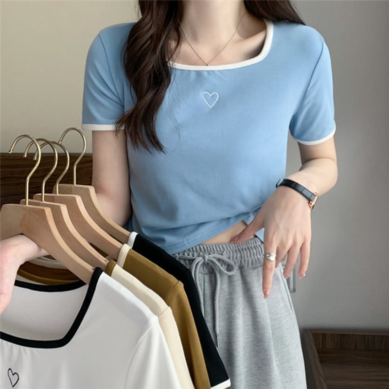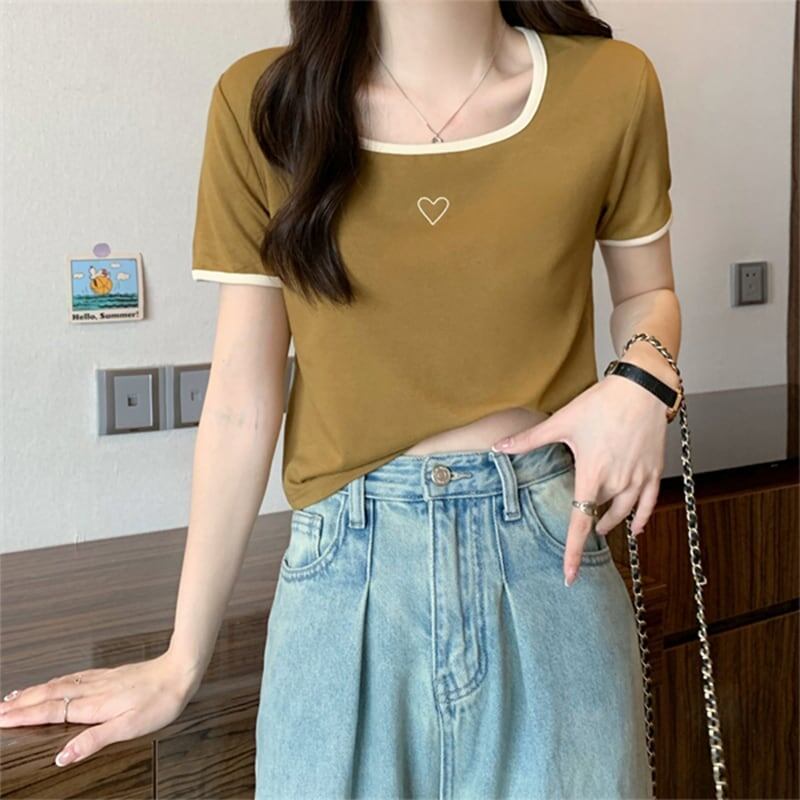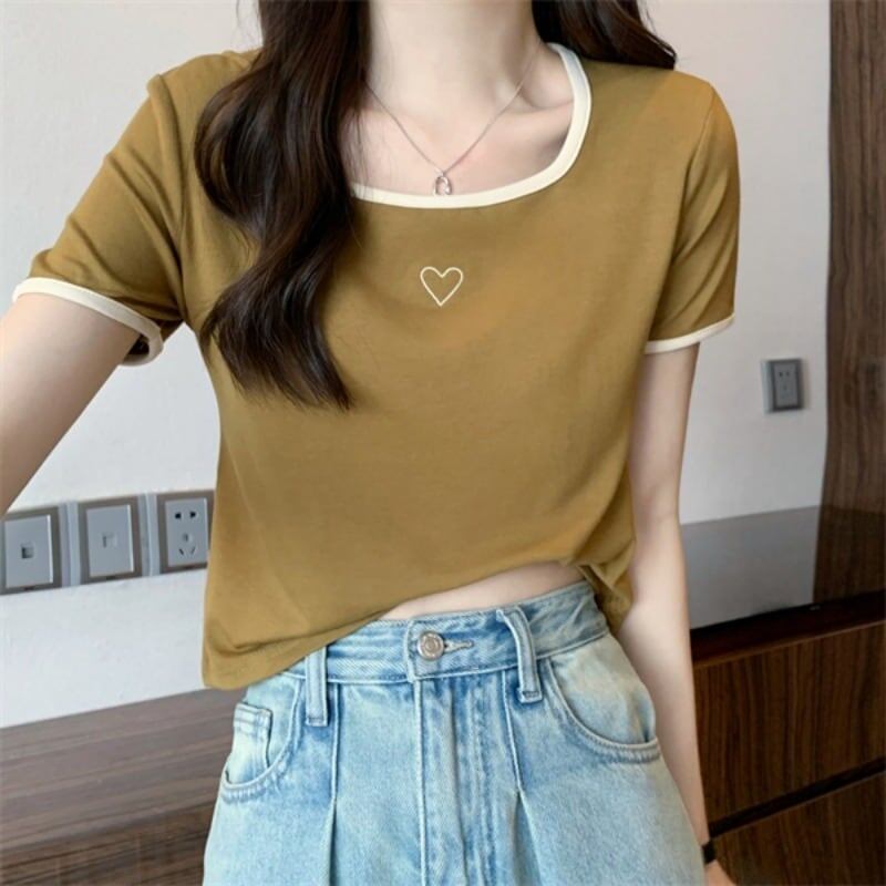 スリム スタイリッシュ 切り替え Tシャツ カットソー<ins-3449>
