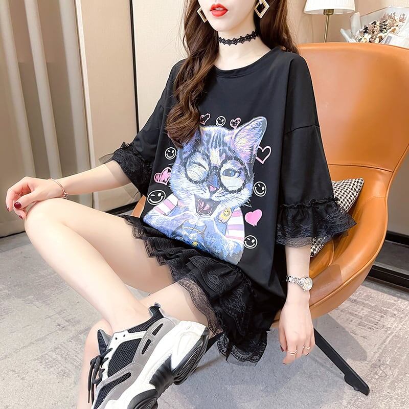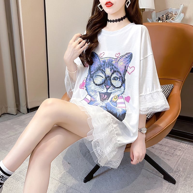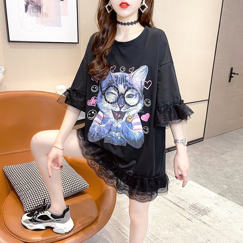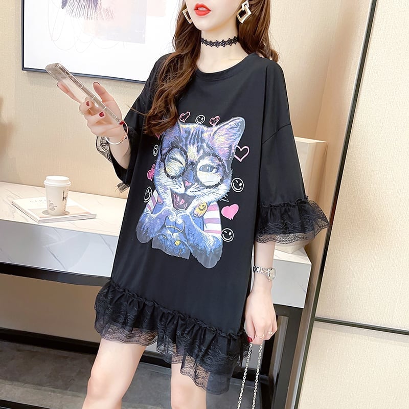 好感度満載 美感いっぱい プリント Tシャツ カットソー ワンピース<ins-3428>