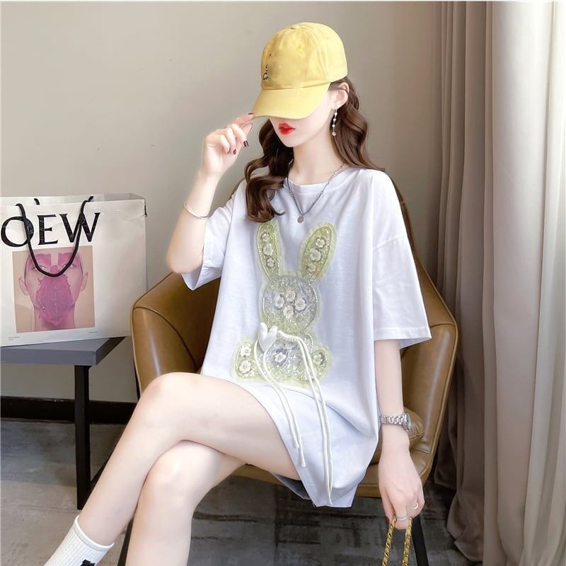 デザイン感 チャーミング 切り替え プリント Tシャツ カットソー<ins-3425>