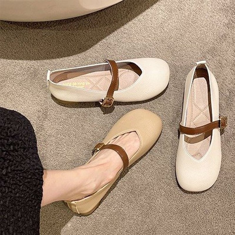 レトロ オシャレ度満点 一目惚れ フラットヒール シューズ<ins-3552>