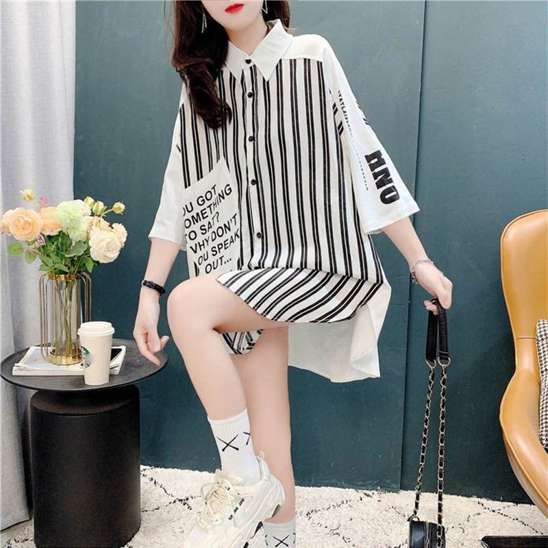 個性的なデザイン 着心地抜群 切り替え プリント Tシャツ カットソー<ins-3629>
