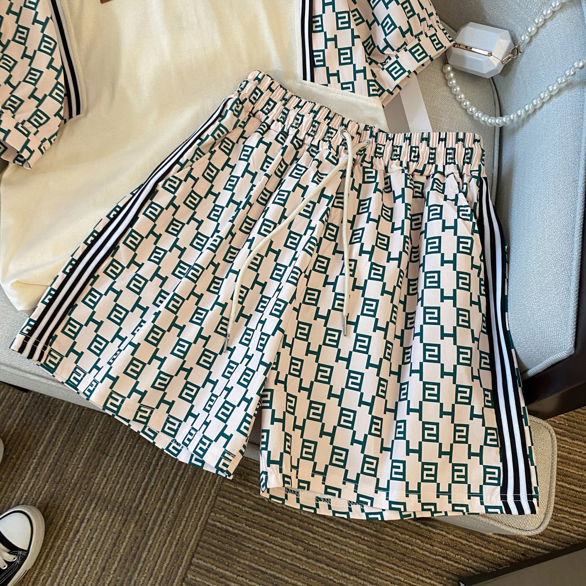 デザイン感 清涼感たっぷり 切り替え ブラウス+ショートパンツ セットアップ<ins-3370>