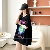 美人度アップ ファッション 切り替え プリント Tシャツ カットソー<ins-3412>