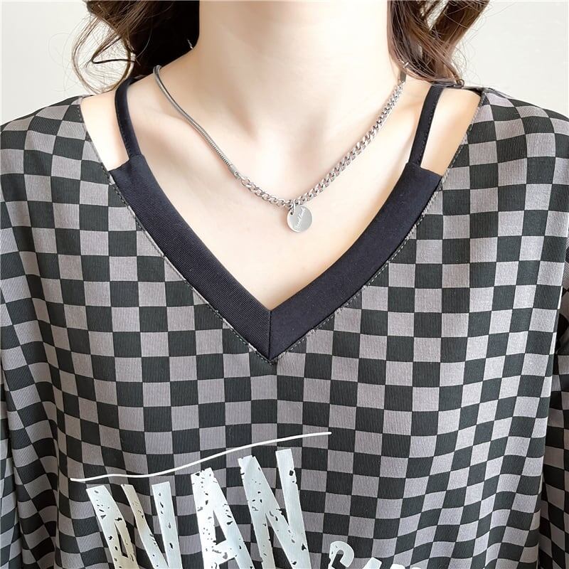 ゆったり感アップ オシャレ度満点 切り替え プリント Tシャツ カットソー<ins-3387>
