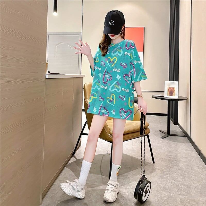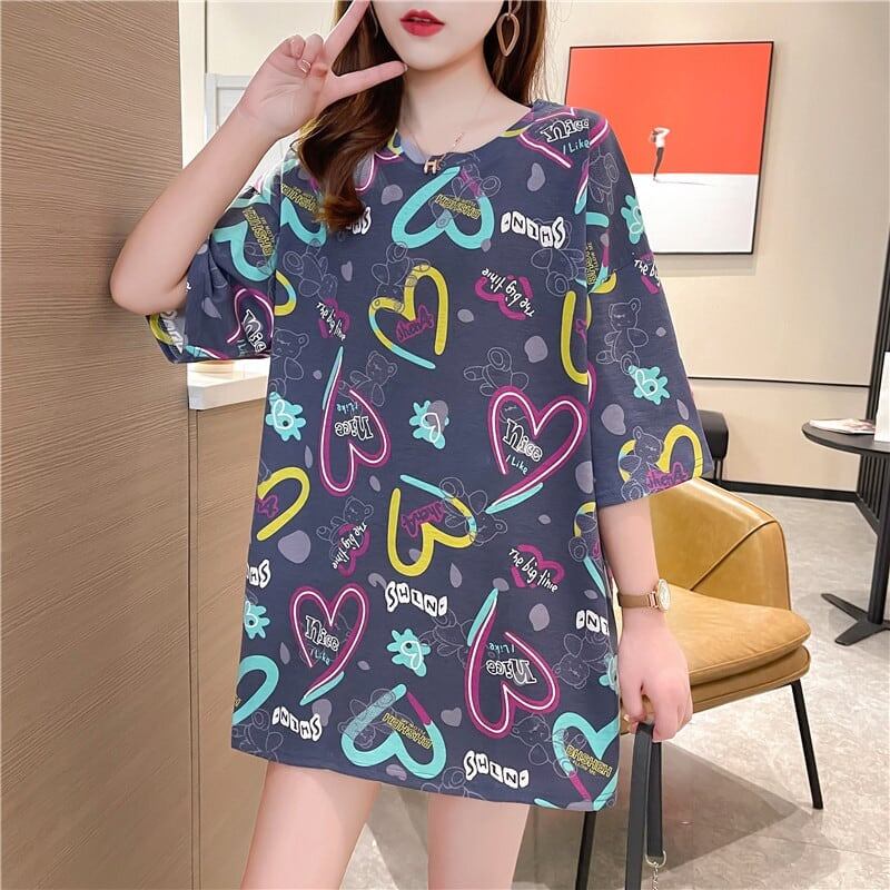 スタイリッシュ 一目惚れ プリント Tシャツ カットソー ワンピース<ins-3322>