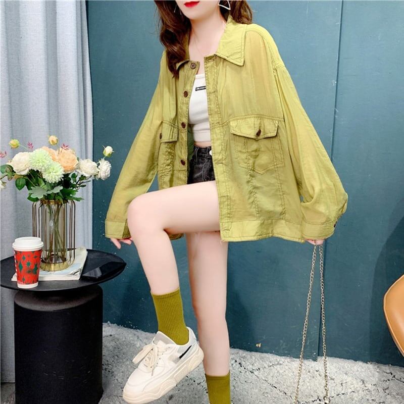 カジュアル 透け感 日焼け対策 切り替え ジャケット ブルゾン<ins-3386>