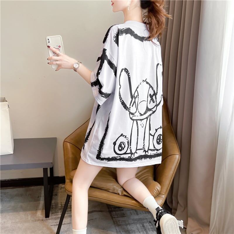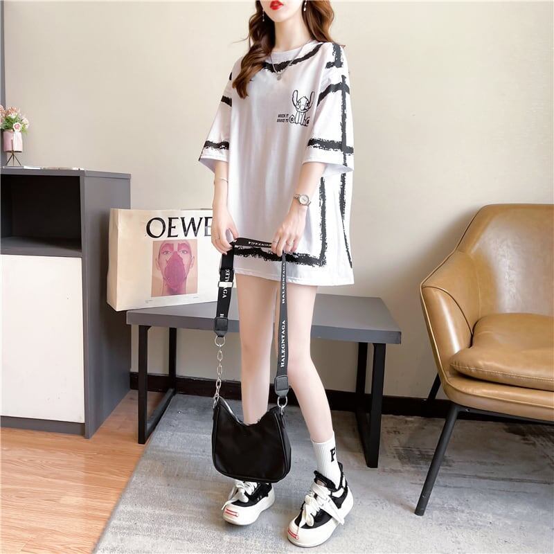 好感度満載 美感いっぱい 切り替え プリント Tシャツ カットソー<ins-3585>