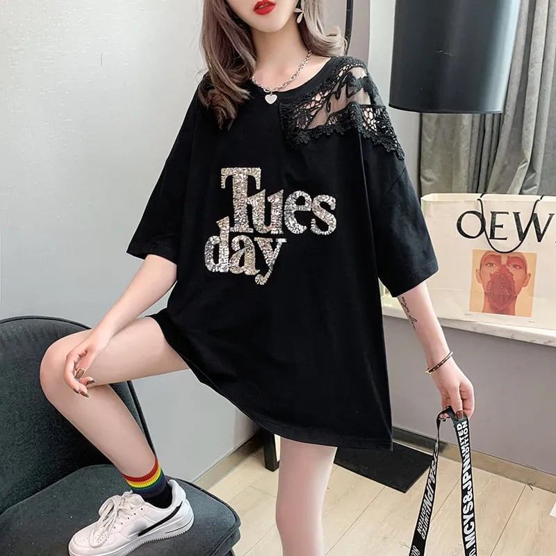 ゆったり感アップ ファッション プリント Tシャツ カットソー<ins-3306>