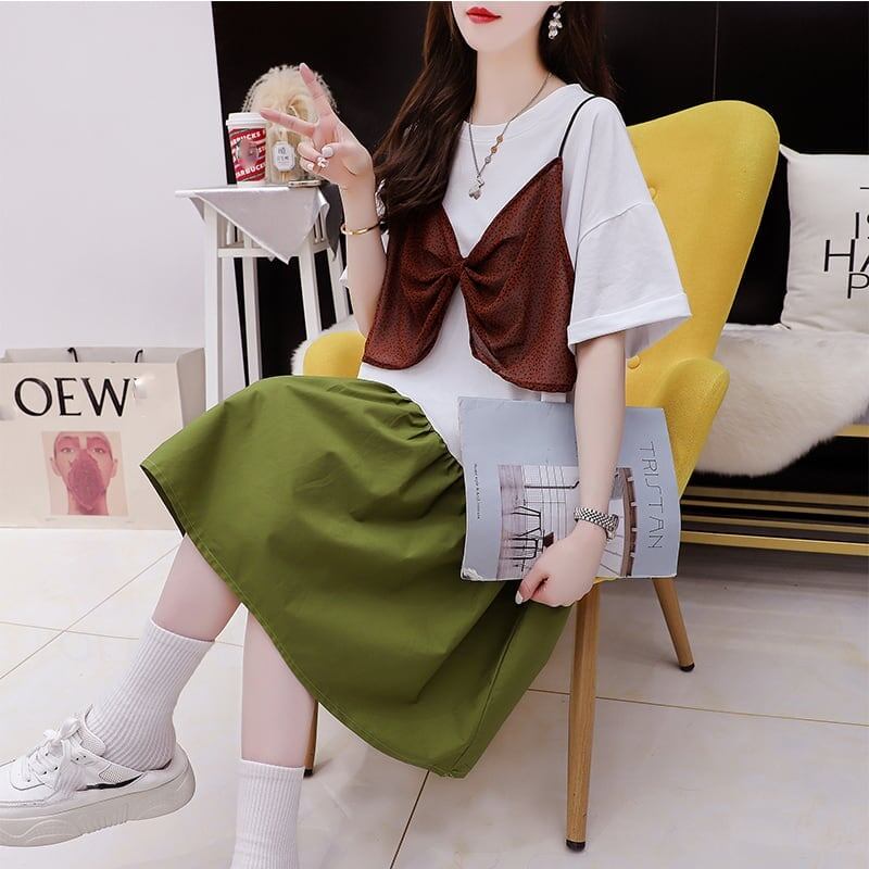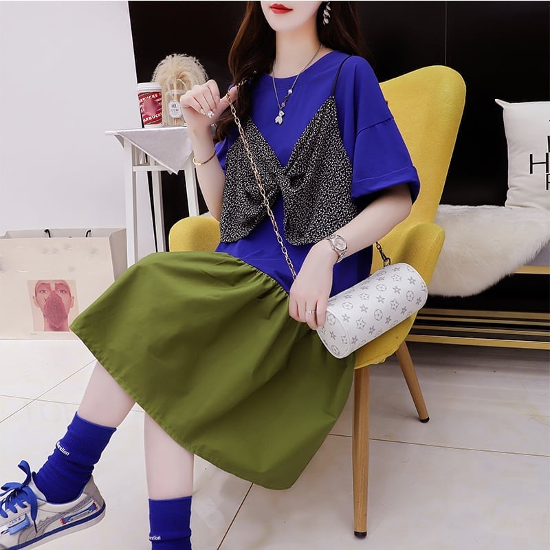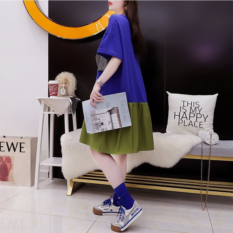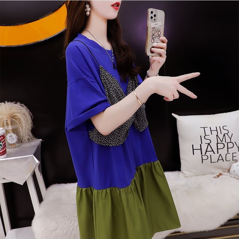 ゆったり感アップ 高級感溢れる Tシャツ カットソー ワンピース<ins-3350>