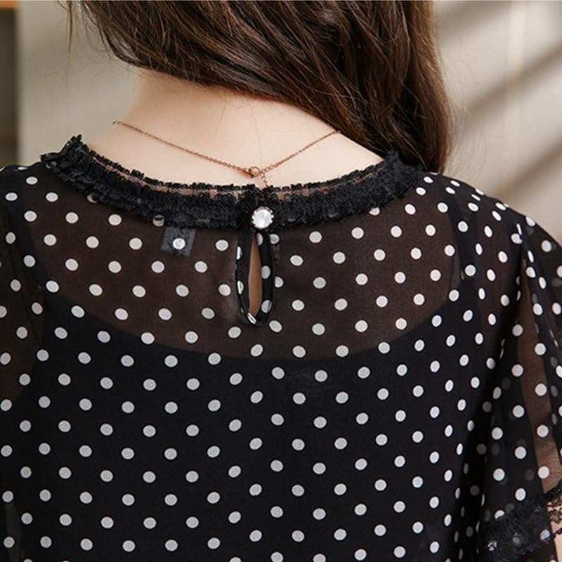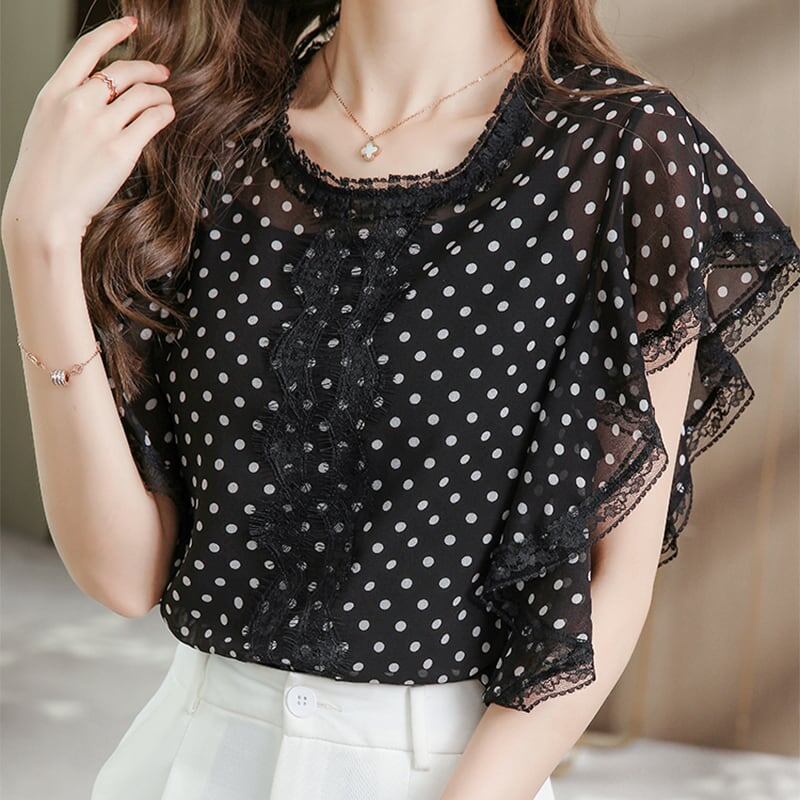 スタイリッシュ 一目惚れ 水玉 シャツ ブラウス トップス<ins-3178>