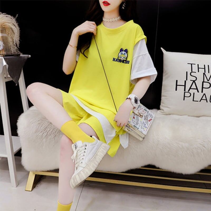 ルーズ 美人度アップ 切り替え Tシャツ+ショートパンツ セットアップ<ins-3310>