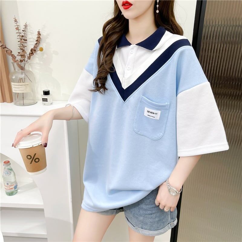 着心地抜群 女性力を高める 切り替え Tシャツ カットソー<ins-3299>