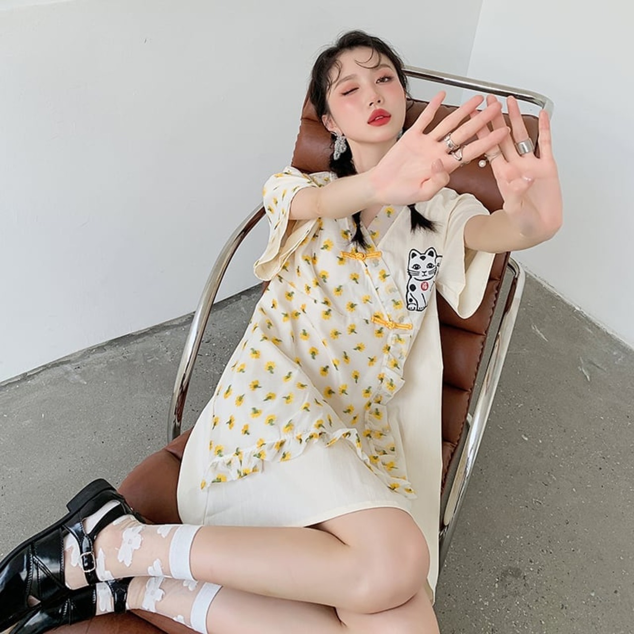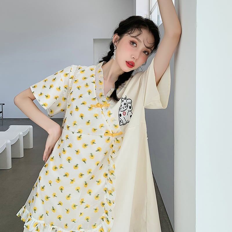 清純甘くて女子力UP 好感度満載 プリント ワンピース<ins-3253>
