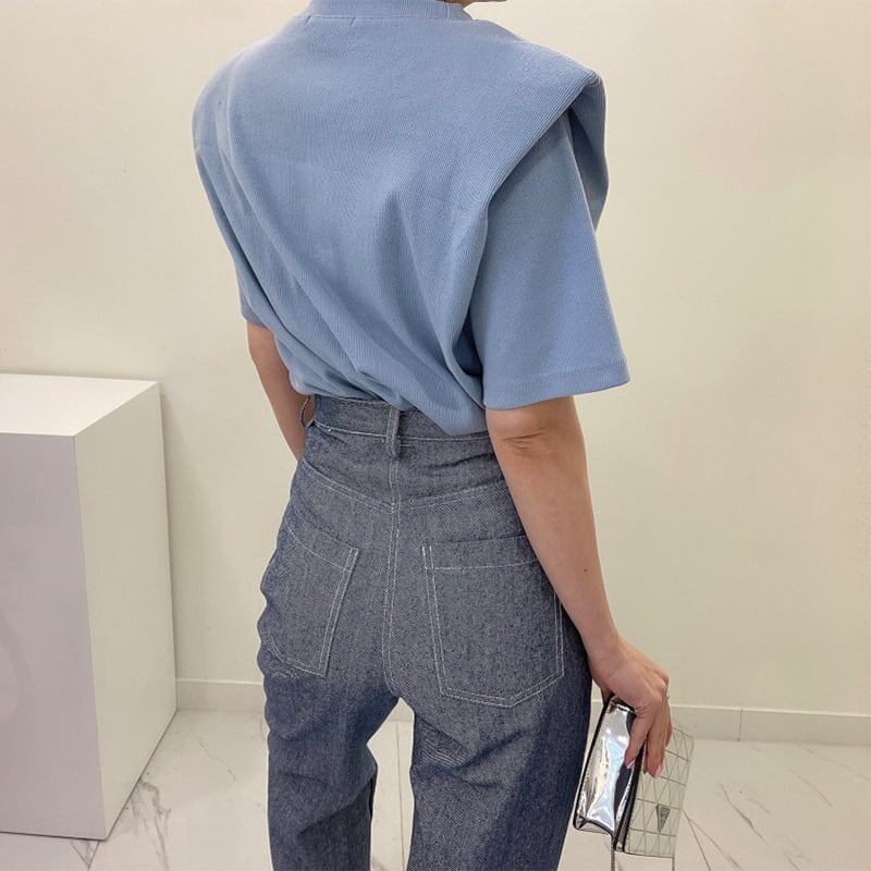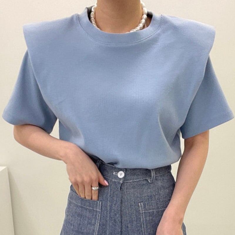 好感度満載 美感いっぱい 無地 切り替え Tシャツ カットソー<ins-3285>