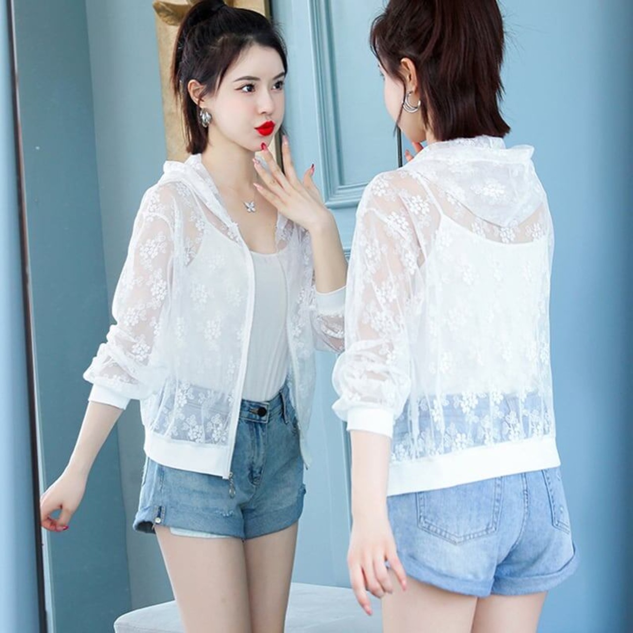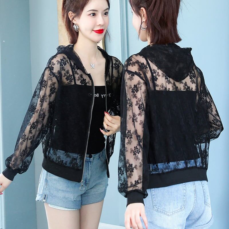 着心地抜群 透け感 日焼け対策 切り替え ジャケット ブルゾン<ins-3241>