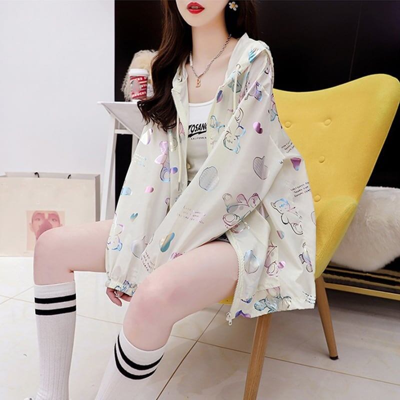 着心地抜群 一目惚れ 切り替え プリント ジャケット ブルゾン アウター<ins-3259>