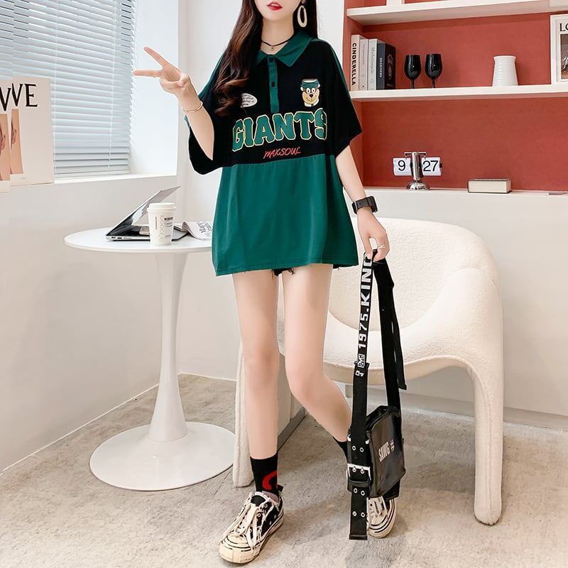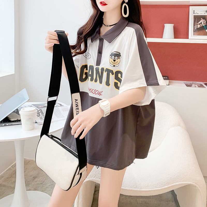 着心地抜群 好感度満載 POLOネック アルファベット Tシャツ カットソー<ins-3218>