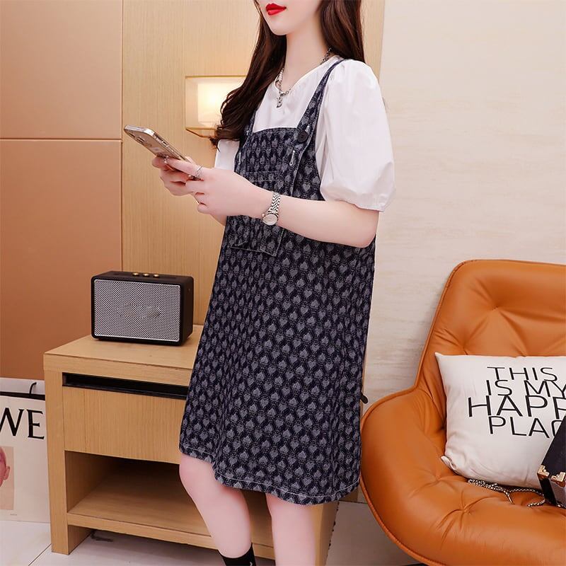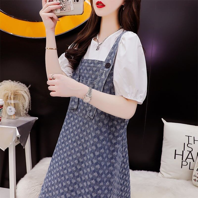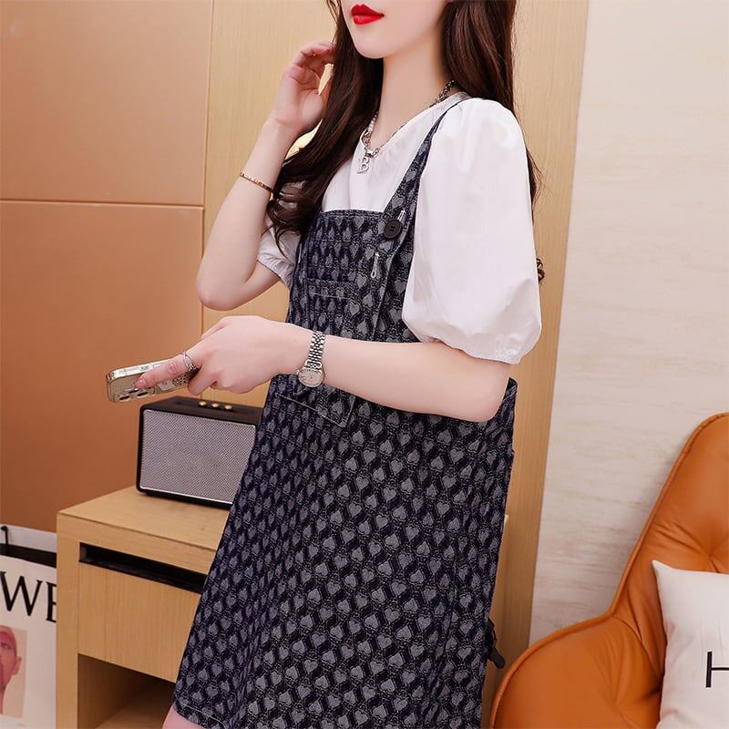 好感度満載 美感いっぱい Tシャツ+サロペットスカート セットアップ<ins-3210>